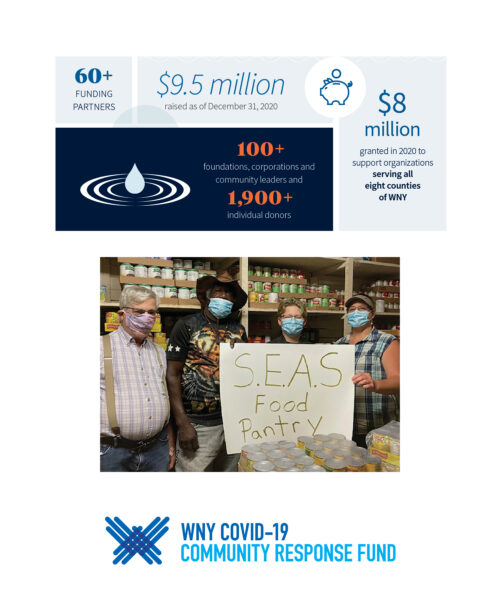 As a community convener, the Community Foundation rapidly responded with our partners at The John R. Oishei Foundation, Health Foundation for Western and Central New York, United Way of Buffalo and Erie County, Ralph C. Wilson, Jr. Foundation and the Peter and Elizabeth C. Tower Foundation, to bring together the funding community to stage a coordinated and regional philanthropic response through the WNY COVID-19 Community Response Fund.